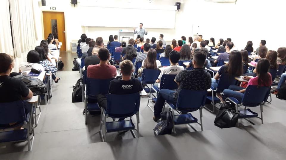 Com a sala cheia, o diretor geral da FACEC, Prof. Dr. Mário Neto, iniciou as atividades com a palestra “O que você faz com o seu tempo?”.