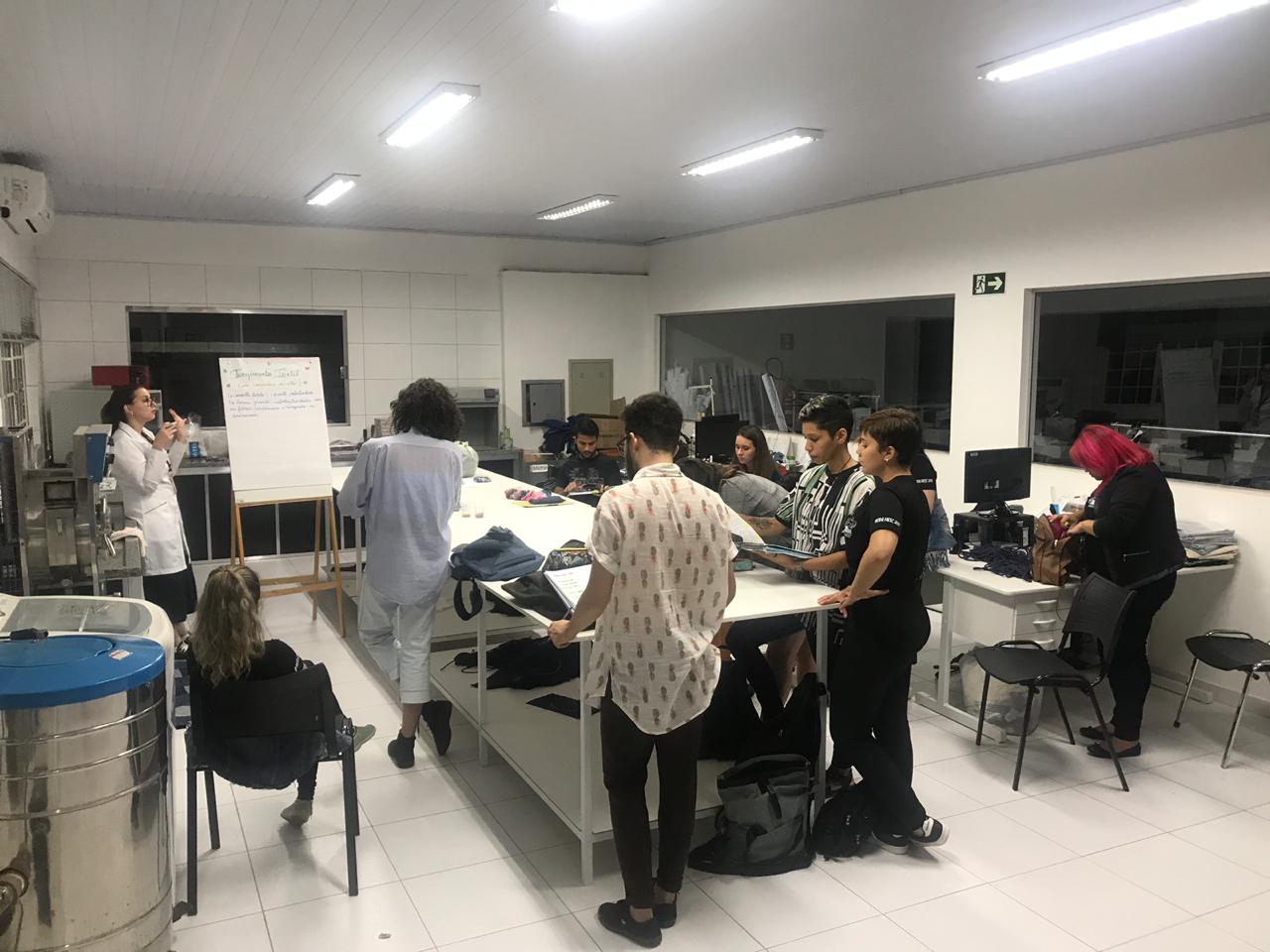 Nesta terça feira (27/08) o segundo ano de moda participou de uma aula prática sobre tingimento, no laboratório Têxtil do Grupo Morena Rosa, com a professora Keila de Prince. Tiveram oportunidade de acompanhar o processo de tingimento, relacionando-o assim teoria com prática.